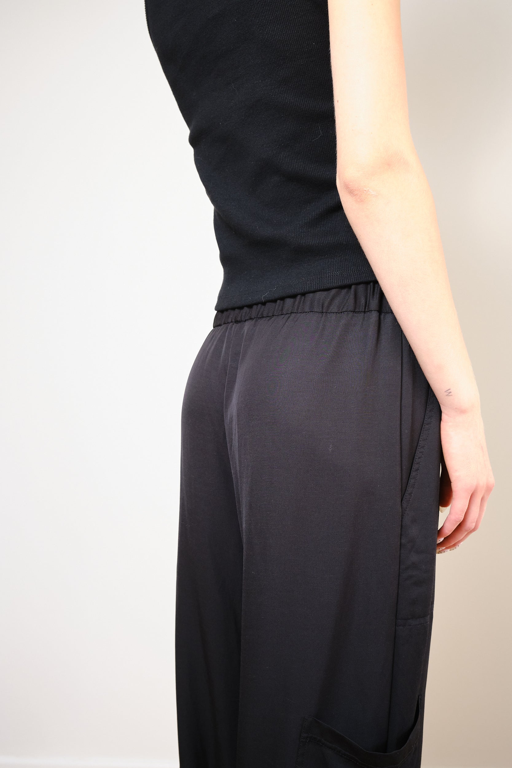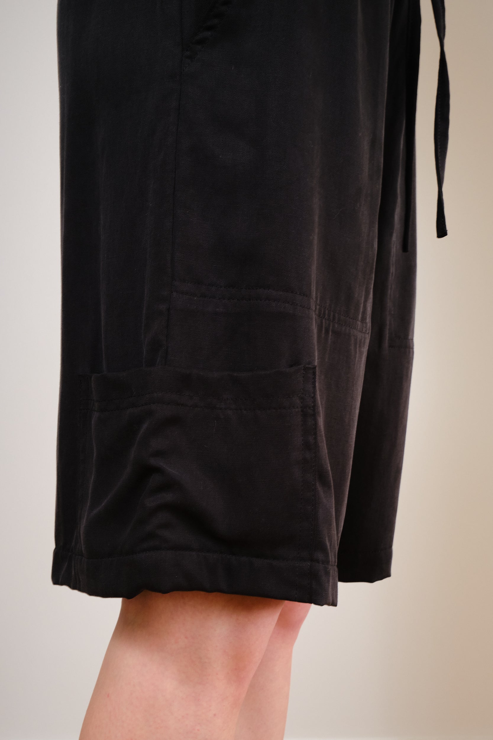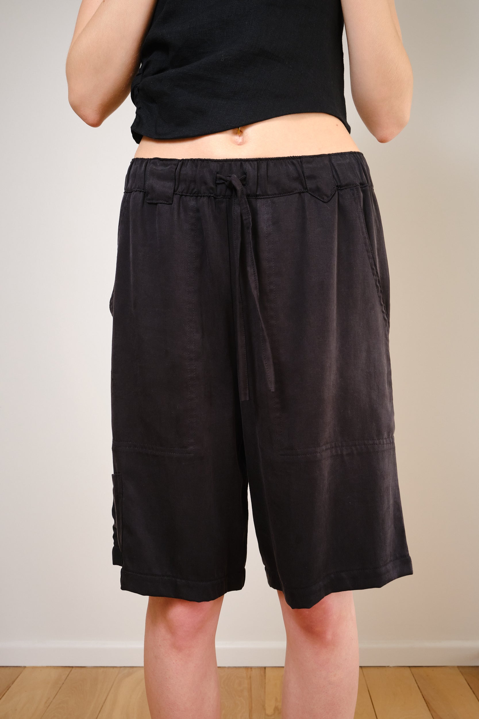 Relaxed mid-waist tailored Mojito Bermuda in timeless black tencel. These bermuda feature a comfortable elastic waistband for a perfect fit. Crafted from 100% high-quality tencel, offer both comfort and elegance, making them a must-have addition to your wardrobe.